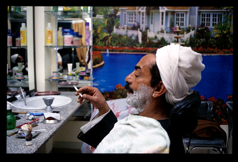 Getting a late evening shave, Luxor, Egypt